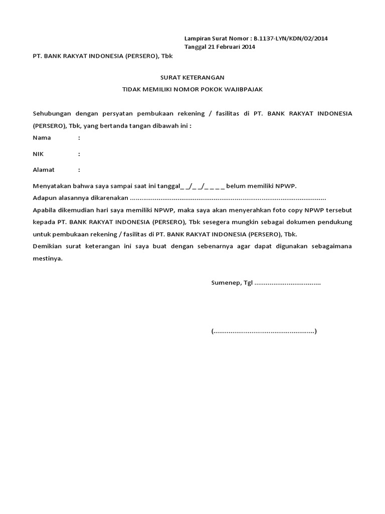 Surat Pernyataan Tidak Memiliki NPWP - File Word from i2.wp.com We did not find results for: Check spelling or type a new query. Maybe you would like to learn more about one of these?